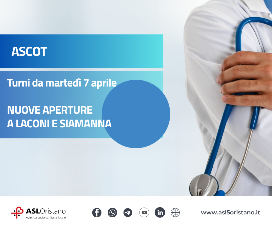 ASCoT: primi aggiornamenti da martedì 7 aprile. Nuovi ambulatori a Laconi e Siamanna